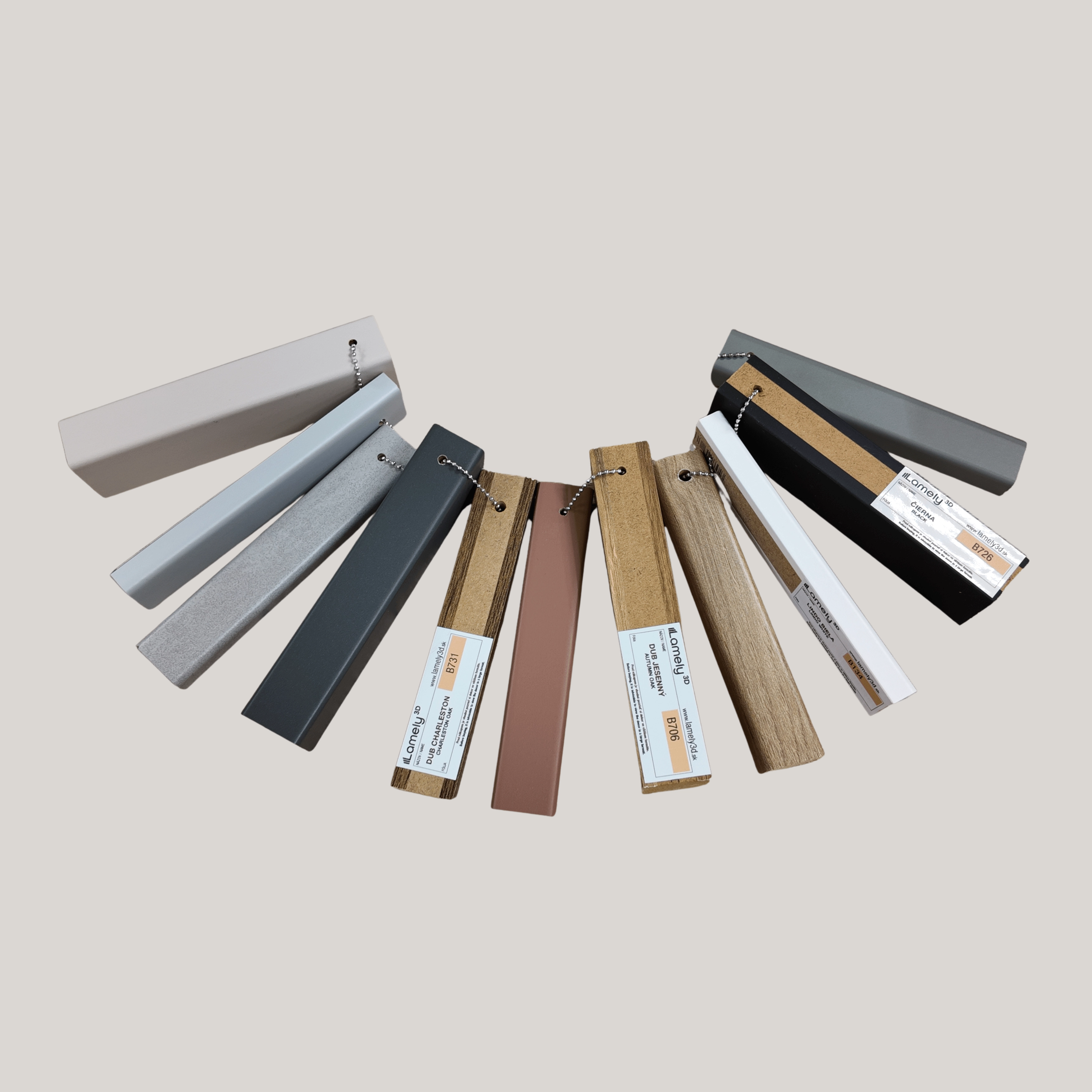 Vzorkovník obsahuje 11 zkrácených lamel ve všech dostupných odstínech. Barvy jsou rozděleny mezi dvě kolekce – 3D a 3D PLUS. Díky tomu si můžete snadno prohlédnout kompletní barevnou nabídku a zároveň porovnat rozdíly mezi kolekcemi – jejich tloušťku, strukturu a celkový vzhled.